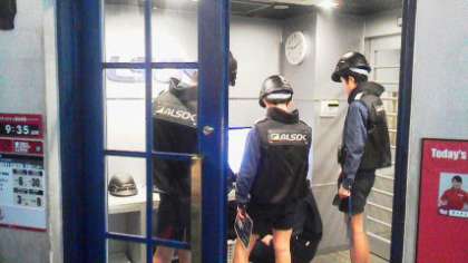 (左から)警備会社で現金輸送、ブティックで販売、和食店で軍艦巻き作りをしています。年少の子や他校の子とも仲良く一緒に活動しています。