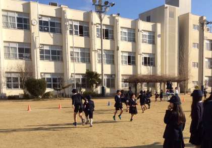 2月15日の児童集会は集会委員会児童によるゲームです。子どもたちは、運動場にキッズファミリー班(縦割り班)で集合。ぽかぽかした日差しのもと、力を合わせてゲームを楽しみました。フラフープや輪の中に低学年の児童が入り、高学年児童がつながって二人で走ります。輪をバトン代わりにリレーをしました。息もピッタリ、とっても楽しそうでしたよ!