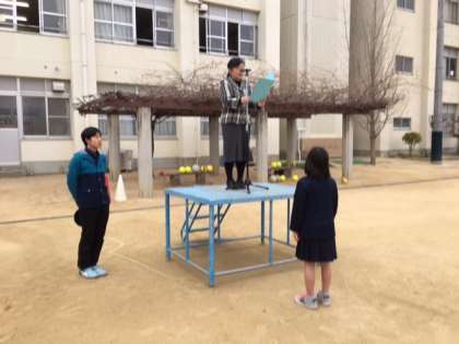 3月6日(月)の全校朝会で、6年生がライオンズクラブ主催の「第29回国際平和ポスター・コンテスト」で表彰されました。「国際平和ポスター・コンテスト」は平和教育の取り組みの一環として、毎年6年生が応募しています。今年は1名の児童が入賞し、本日6年生を代表して表彰されました。児童一人一人の作品には平和の願いが思い思いに表現されていて、大変素晴らしい出来栄えでした。