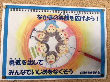 今後の取組みとして、それぞれの学級で考えた「いじめをなくすための取組み」を玄関に掲示し、みんなに見てもらえるようにしたいと考えています。