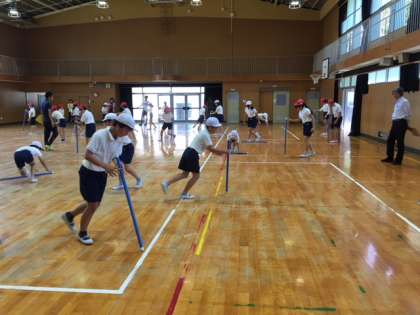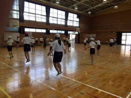 本日(5月26日)の6年生の公開授業では「体つくり運動」のうち、「体力を高める運動」領域について実践しました。