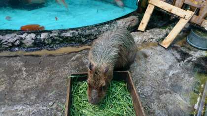 下の写真は、カピバラです。こう見えて泳ぐのが得意なのだそうです。