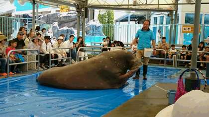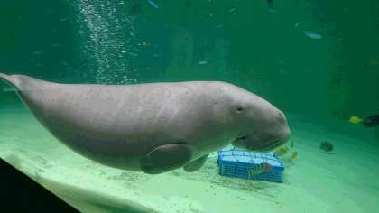 鳥羽水族館のアイドル、ジュゴンです。泳ぐ姿がとても優雅です。