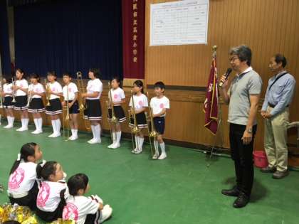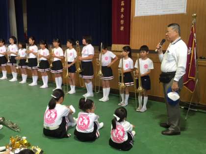 高倉連合こども会鼓笛隊と高倉中学校吹奏楽部の演奏や図書館ボランティア「ミルパジュ」さんによる読み聞かせ、生涯学習体験教室「親子で描こう あいうえお講座」が開催されました。