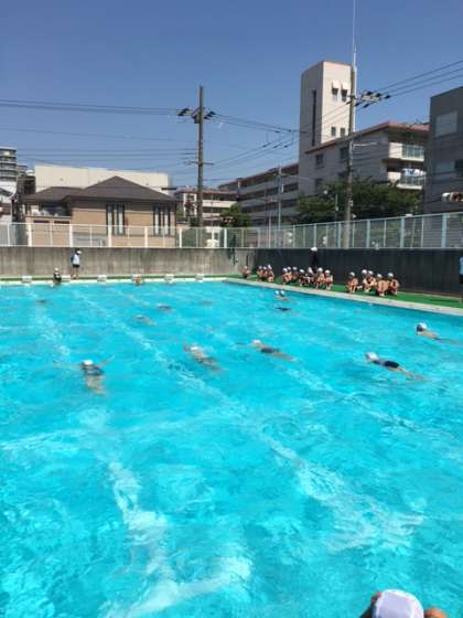 子どもたちは久しぶりに学校のプールの水の感触を確かめるように、ゆっくりと入水しました。少しずつ水に慣れてくると、自分のペースで泳ぎました。プールからは子どもたちの歓声が聞こえてきました。特に1年生は小学校初めてのプールでしたが、プールからあがった子どもたちからは、楽しかったよという声が多く聞かれました。