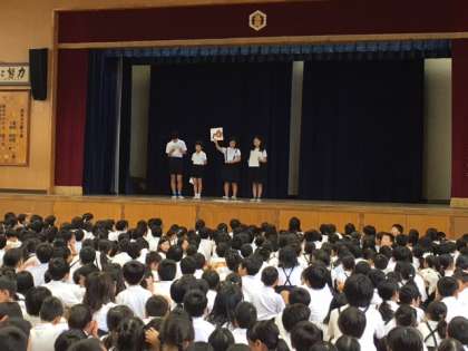 6月28日の児童集会は、集会委員会の子どもたちが考えた「キャラクター当てゲーム」をしました。