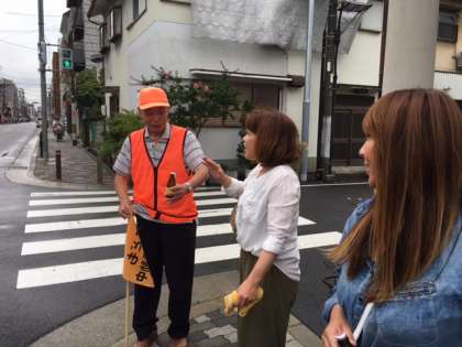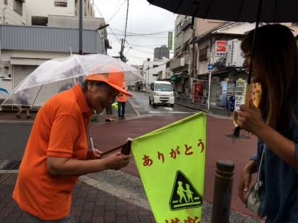 7月5日(水)の朝は、あいにくの雨模様でしたが、オレンジ隊の方々がこの日も子どもたちの登校を見守ってくださいました。また、地域やPTAの方々も同様に雨の中を見守ってくださいました。