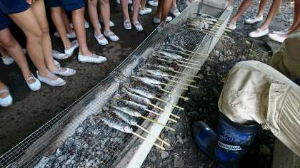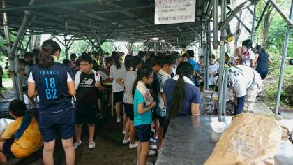 魚つかみの後はお待ちかね。その場で塩をまぶしてアマゴの塩焼きをいただきました。普段、魚が苦手な子も、おいしいおいしいと言いながら食べていました。