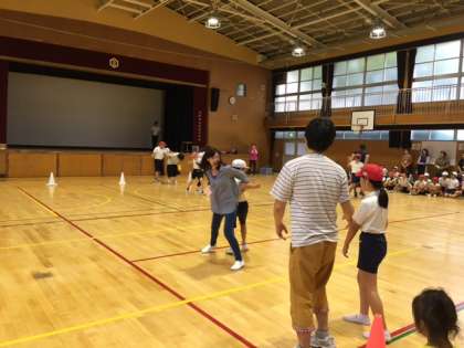 写真左から、6年室内オリンピック、修学旅行ビデオ放映の様子です。