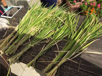 この後、スズメが入らない場所で「はさがけ」をして、脱穀→籾摺り→精米と作業が続きます。
