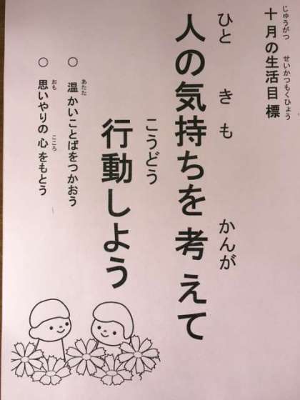 10月がスタートしています。10月の生活目標が子どもたち全員に伝えられました。