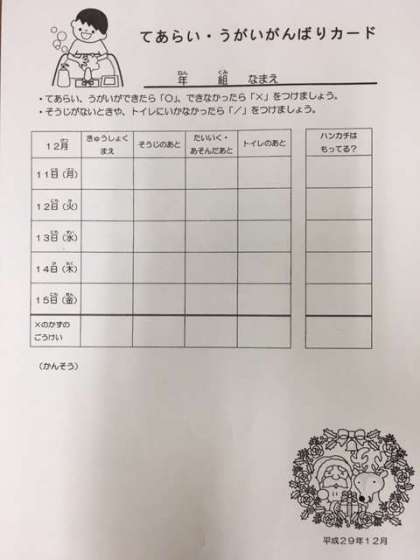また、本日から手あらい・うがい週間がスタートしています。衛生面にも気をつけながらしっかり体を動かして、しっかり食事を摂ることで元気に冬休みを迎えられるように指導・支援を行っていきます。