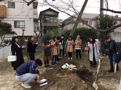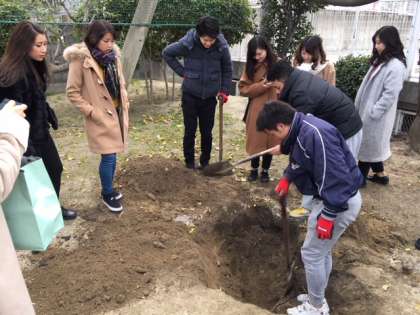 平成30年1月4日(木)に平成20年度卒業の6年3組の卒業生のみなさんが高倉小学校を訪問しました。卒業記念として地中に埋めたタイムカプセルを掘り出すことが目的でした。