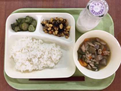 筑前煮・ひじき豆・きゅうりのかつお梅風味・ごはん・牛乳でした。