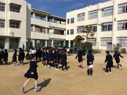 2月16日(金)に昨日の5・6年生の部に続き、1・2年生の大なわ大会が行われました。運動場の日差しが温かく、よい天気のもとで実施することができました。