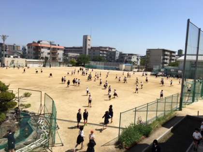 4月19日(木)の昼休みは気温も上がって気もちのよい気候のもと、子どもたちが運動場や中庭に出て元気よく遊んでいます。なかには半袖で走り回っている子どもたちもいました。子どもたちは少しずつ新しい学級にも慣れ、友だちといっしょにのびのびと学校生活を送っています。