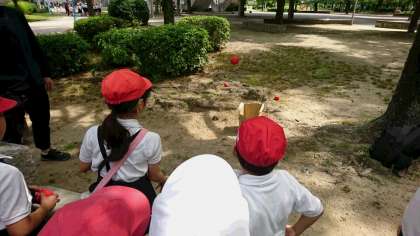 「玉入れコーナー」「玉送りコーナー」「ミラーゲームコーナー」の様子です。