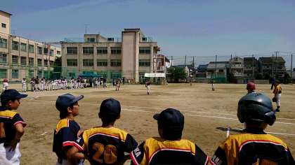 ソフトボールの試合の様子です。相手のピッチャーの球がとても速くててこずりましたが、見事勝利しました。やったね!!