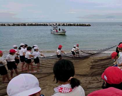 地引き網が始まりました。今夜の夕食が豪華になりますように・・・。