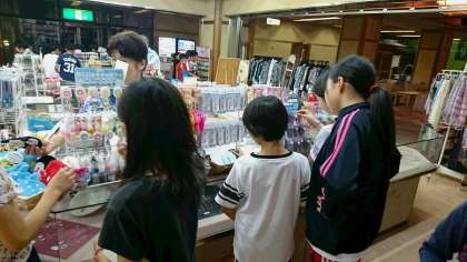 宿舎でのお買い物タイムの様子ですです。お家の方の好みなど、あれこれ考えながらお土産を選ぶ姿は何ともかわいらしいです。