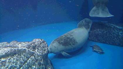 マナティとジュゴンの写真です。とても似ていますが皆さんは見分け方がお分かりになりますでしょうか?