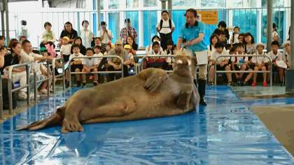 セイウチのふれあいタイムが始まりました。900kgの巨体から繰り出される様々な芸は見ごたえ十分でした。