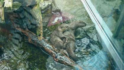 コツメカワウソがじゃれあっています。仲よしなんですね。