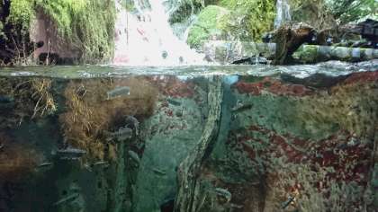 日本の川のコーナーです。地味だからかあまり人気がないようなので、水槽前はガランとしていました。