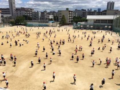 さわやかな天気のもと、子どもたちは運動場に出て一生懸命いろいろな技に挑戦したり、友だちと協力して大縄跳びに挑戦したりしていました。