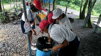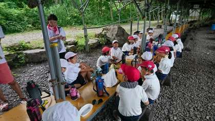 美味しそうに食べています。後始末も協力して、きちんとできています。