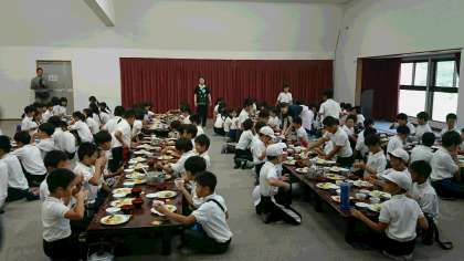朝食の様子です。生野菜までちゃんと食べようとがんばっている子がたくさんいて感心しました。