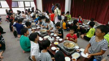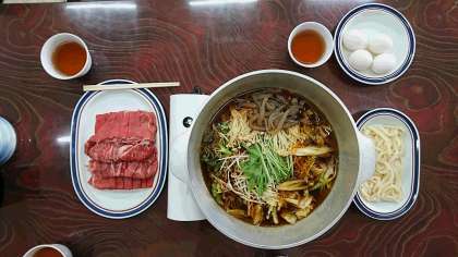 2日目の夕方はすき焼きです。楽しそうに話をしながら食べる姿にたくましさを感じます。