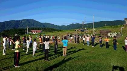 朝の集いの様子です。ちゃんと5分前集合ができました。