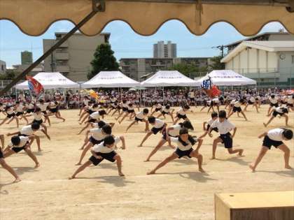 高小ソーランは、しっかりと腰を低くして、素早い立ち上がりでソーランをパーフェクトペースで踊り切りました。子どもたちの気合いが入ったかけ声に圧倒されました。