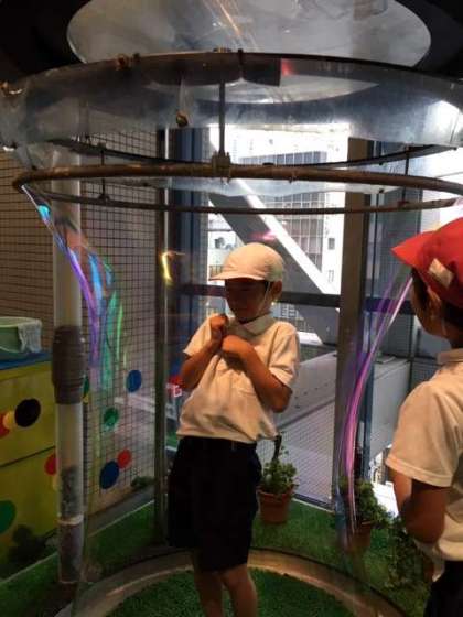キッズプラザには、さまざまな楽しい科学実験のコーナーがあり、子どもたちは実験を楽しんでいました。