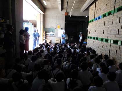 2年生の子どもたちにとって、「磯じまん」の会社は高倉地域にあるので馴染み深いのですが、今日は初めて工場の中を訪問することができ、興味津々でした。
