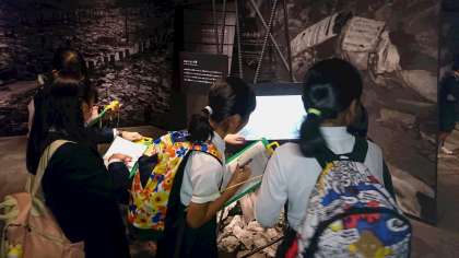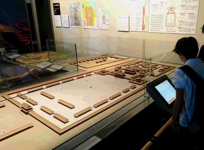 大阪歴史博物館では、子どもたちは大阪の古代から現代までの展示物を見学し、これまでの歴史の学習を振り返りながら、熱心にメモをとっていました。