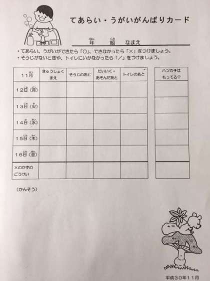 11月12日(月)から手あらい・うがい週間がスタートしました。