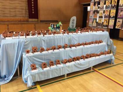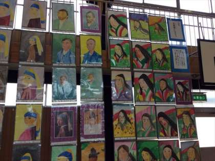 写真は5年生の作品「肖像画になろう」と「シーサー」です。