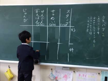 これは12月11日(火)の1〜3時間目に実施予定のスマイルキッズパークで出店する店の内容や役割分担を決めるために、キッズファミリー班(たてわり班)で集まって子どもたちで話し合いを行いました。子どもたちが楽しみにしている行事とあって、話し合いも積極的に行われました。