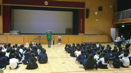12月4日(火)の1〜4時間目に3年生が盲導犬講演会に参加しました。今年も本行事の企画と実行をPTA人権成人教育委員会の皆様のお力で実現しました。