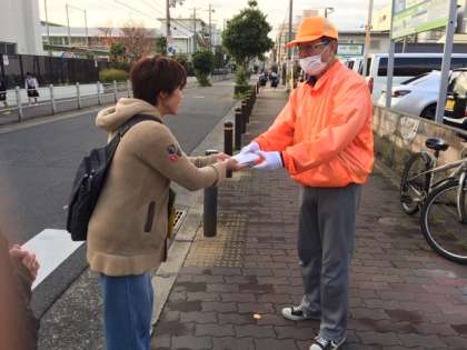 12月に入り、寒い季節が巡ってきましたが、今朝も子どもたちが安全に登下校できるようにオレンジ隊の皆様方が通学路で登校指導をされていました。