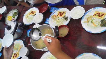 ごはんやお味噌汁を上手についで、配膳します。
