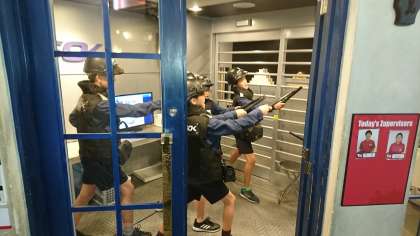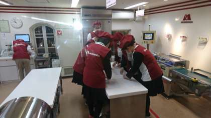 写真は上から、警備センター・お菓子工場での仕事の様子です。