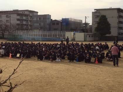 ヒントを順に読み上げると、子どもたちはみんな一生懸命に答えの先生を考えていました。当たったキッズファミリー班からは歓声が上がっていました。寒さに負けずに元気よく活動していました。