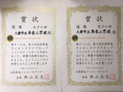 ライオンズクラブカップミニバスケットボール大会において、男子の部、女子の部ともにダブル優勝に輝きました。