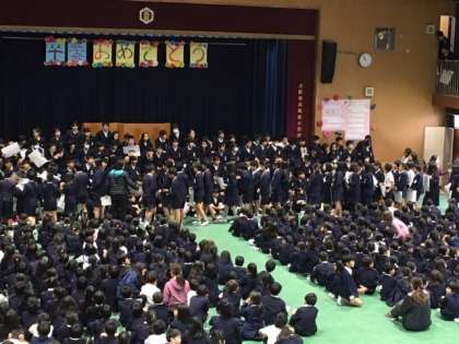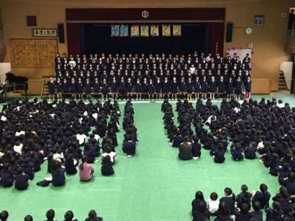 2月27日(水)の3時間目に講堂で全校児童が集まり、「卒業をお祝いする会」が行われました。