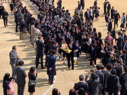 たくさんの保護者の方々、教職員、在校生に拍手で送っていただきました。