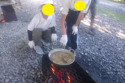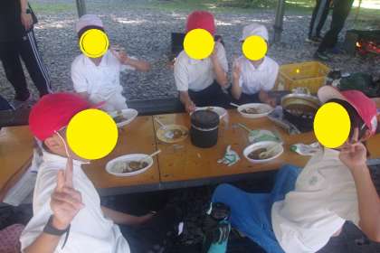 子どもたちが作ったカレーをちょっとずつ味見させてもらったら、どのグループも上手にできていました。ごはんの炊き加減もいい感じで、「3回おかわりした!」「おれは4回おかわりした!」などとうれしそうに自慢していました。