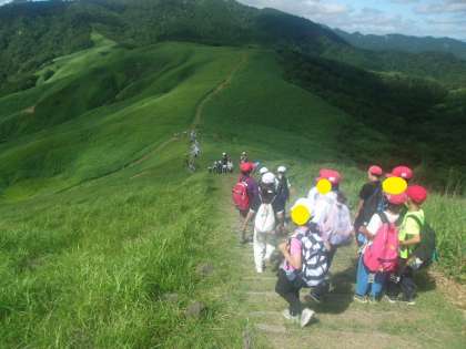 宿から中間地点までは、クラスごとに登っていきました。途中で休憩を挟んで、そこからはグループで頂上を目指しました。頂上に着いたら、グループごとに写真を撮って下山しました。宿に着いたらガリガリ君が配られました。